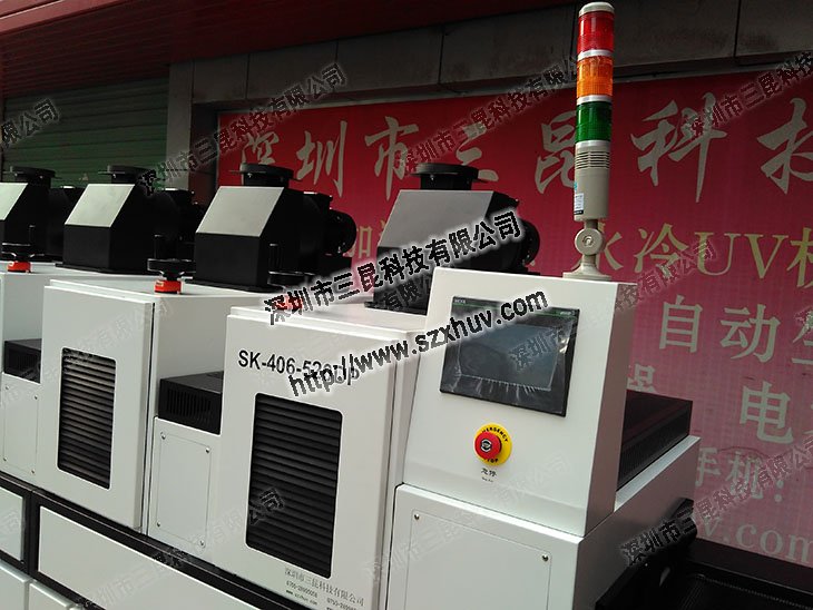UV燈管功率、光固化速度、控制系統、物品輸送速度系統等配置,但還是不盡相同的。例如光固化設備可以選擇普通的SK系列的強制式四燈光固化設備,也可以選擇