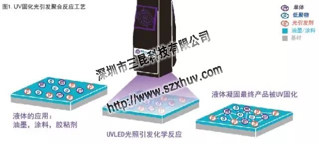 UV LED)固化在觸摸屏生產工藝的粘結和涂裝應用上有許多好處,可以提供更加連續可靠的流程而不會破壞或使熱敏元件褪色,紫外光UVLED固化機是利用UV能量使液體變為固體的光聚合過程。依靠吸收UV能量,光引發劑(PI)的自由基引發膠粘劑(單體和聚合物)的交聯反應,在這個聚合反應中油墨,涂料或膠粘劑通常幾秒就能夠固化或凝固。