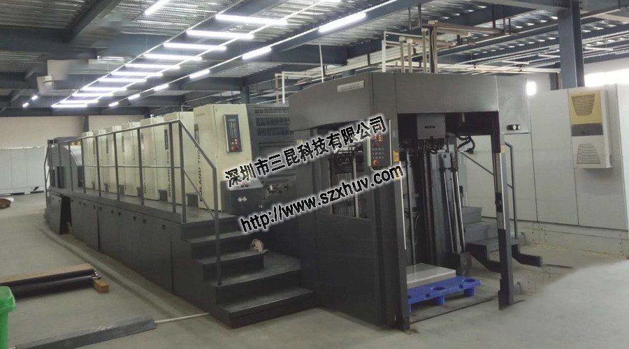 ▲在這種情況下,在河南南陽某客戶的曼羅蘭700 7 + 1膠印機上安裝了LED UV固化系統(tǒng)。 客戶使用了杭華161普通